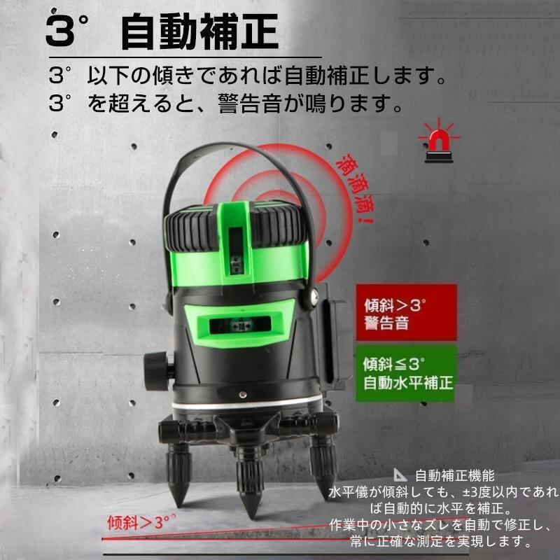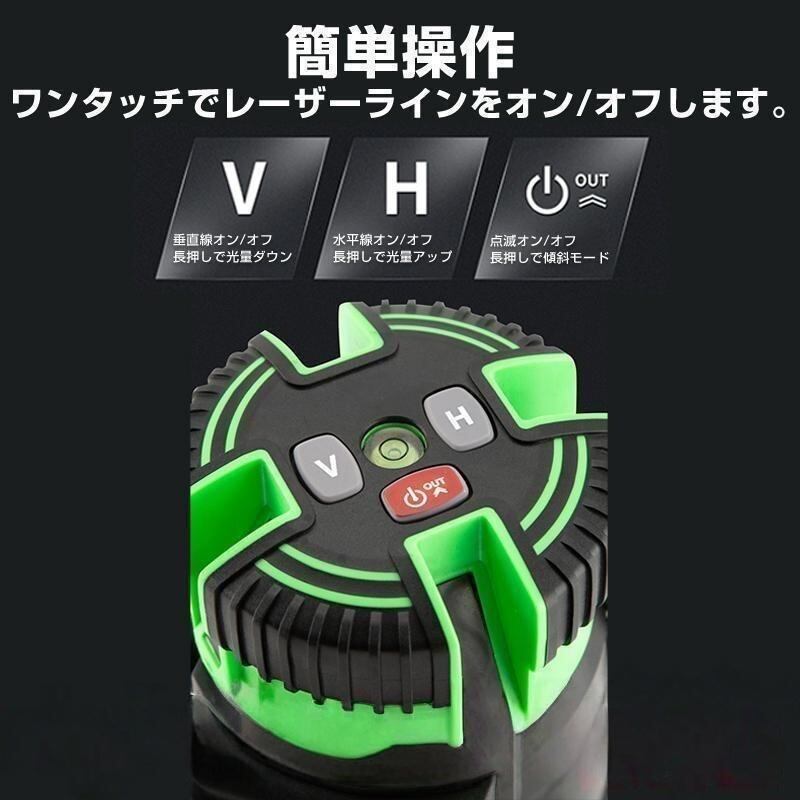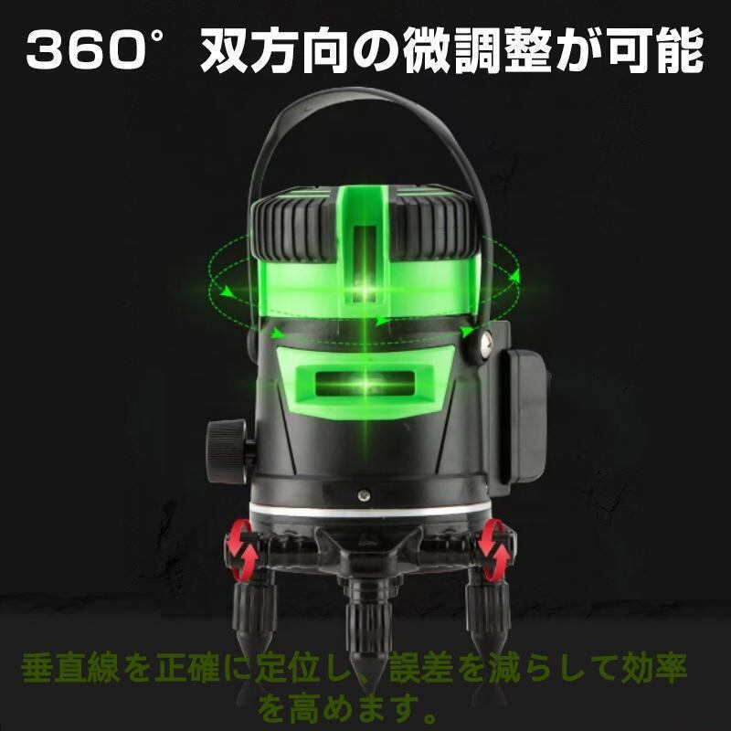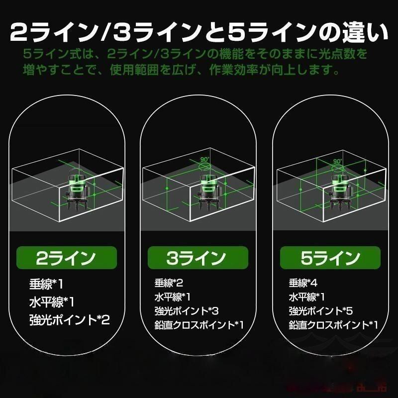墨出し器 5ライン レーザー墨出し器 水平器 グリーンレーザー 水平 垂直 コンパクト 高輝度 屋内 屋外 建築 防塵 防水 傾斜 自動補正