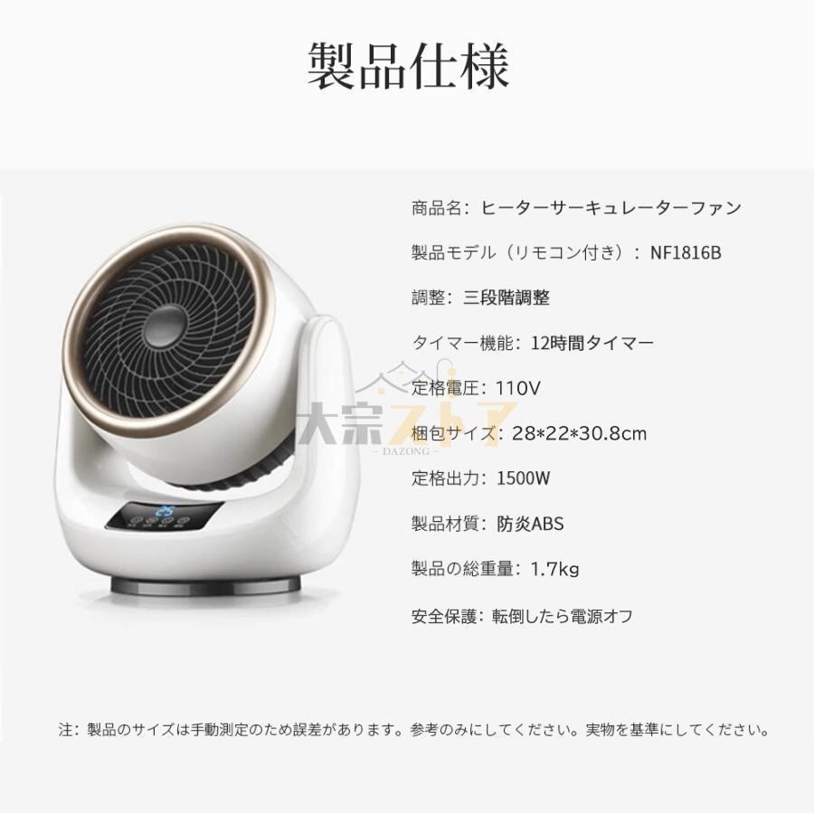 ・温風と送風の冷暖兼用タイプで、一年中お使いいただけます。