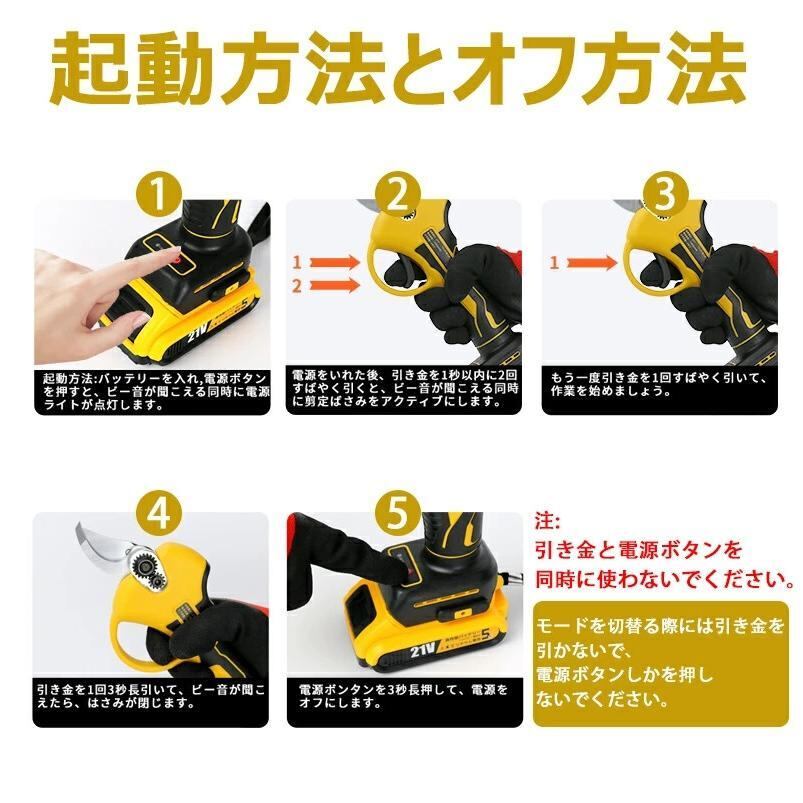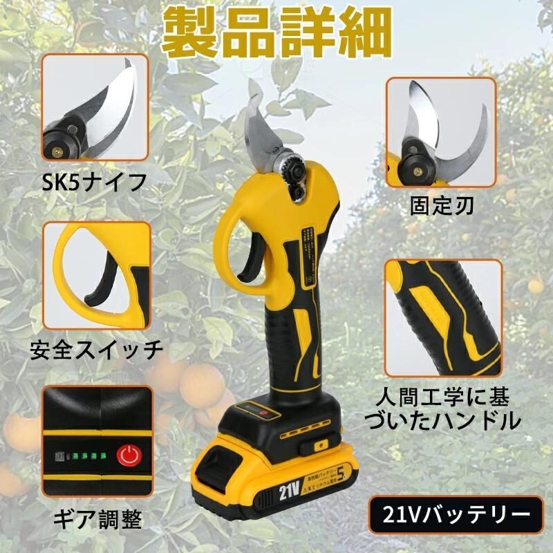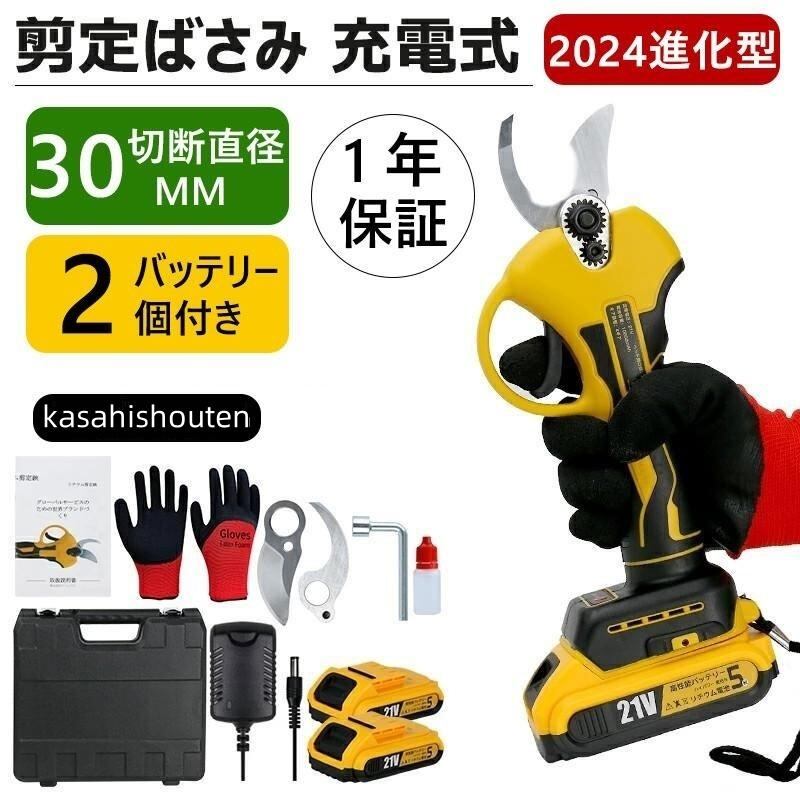 剪定ばさみ 充電式 剪定ばさみ 電動ハサミ ブラシレスモーター採用 開き口30mm 4段階開き角度調整可能 枝切りはさみ 庭木 果樹用 剪定鋏 園芸用具 2個バッテリー