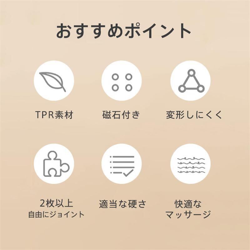 足裏の心地よい刺激でリフレッシュできる足ツボマットです。環境に優しいTPE素材を使用し、耐久性と変形しにくい設計で、長くご愛用いただけます。5つのマグネットと2つの三角形エリアが、足裏に異なる刺激を与え、日々の疲れを癒し、リラックスをサポートします。部屋や廊下に置くだけで、いつでも手軽に足裏マッサージを楽しめます。底部の滑り止め加工が施されているため、安心してご使用いただけます。